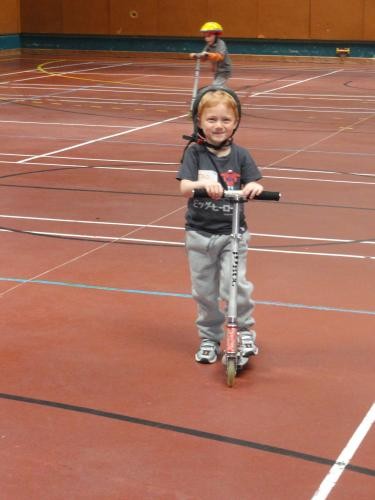 Attention mon chéri, ton casque est mal mis. Papa